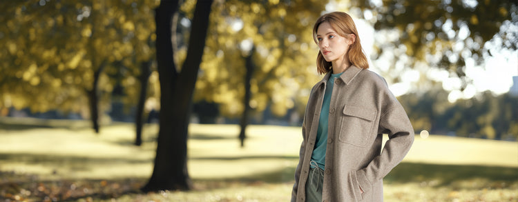 The heavyweight brushed faux wool fabric offers its structure to a style that remains refined