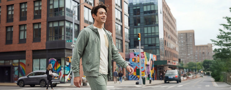MEN'S MORNING JOG ZIP UP - oliveVendor: OFFLEISUREProduct DetailsOur Morning Jog Zip Up is made with our signature ultra-smooth, stretchy jersey. Featuring kangaroo pockets and a drawstring hoodie, you can adjust our jacket to fit your needs, whether it's a layer underneath your coat or light cover up. Fit & SizingModel...
