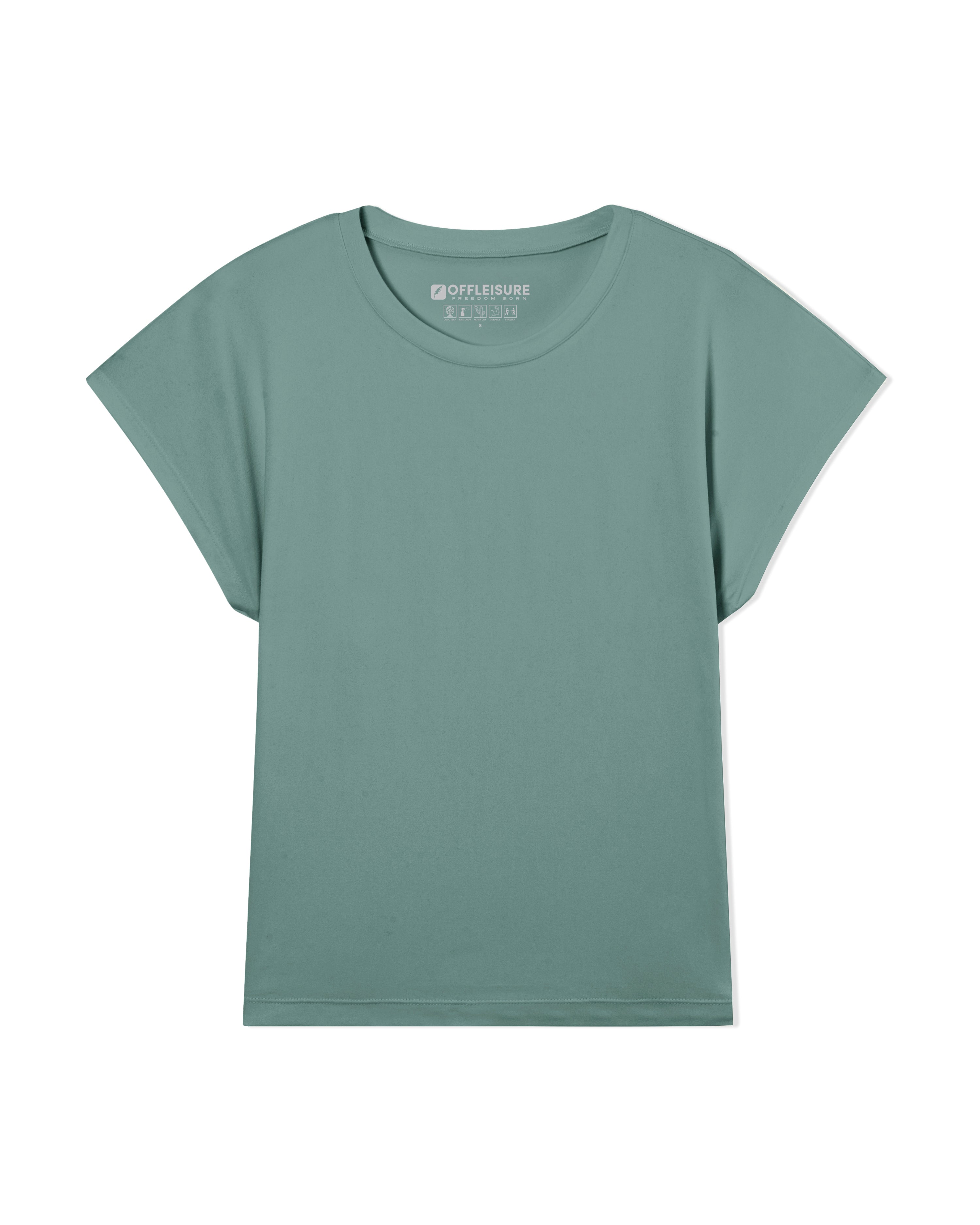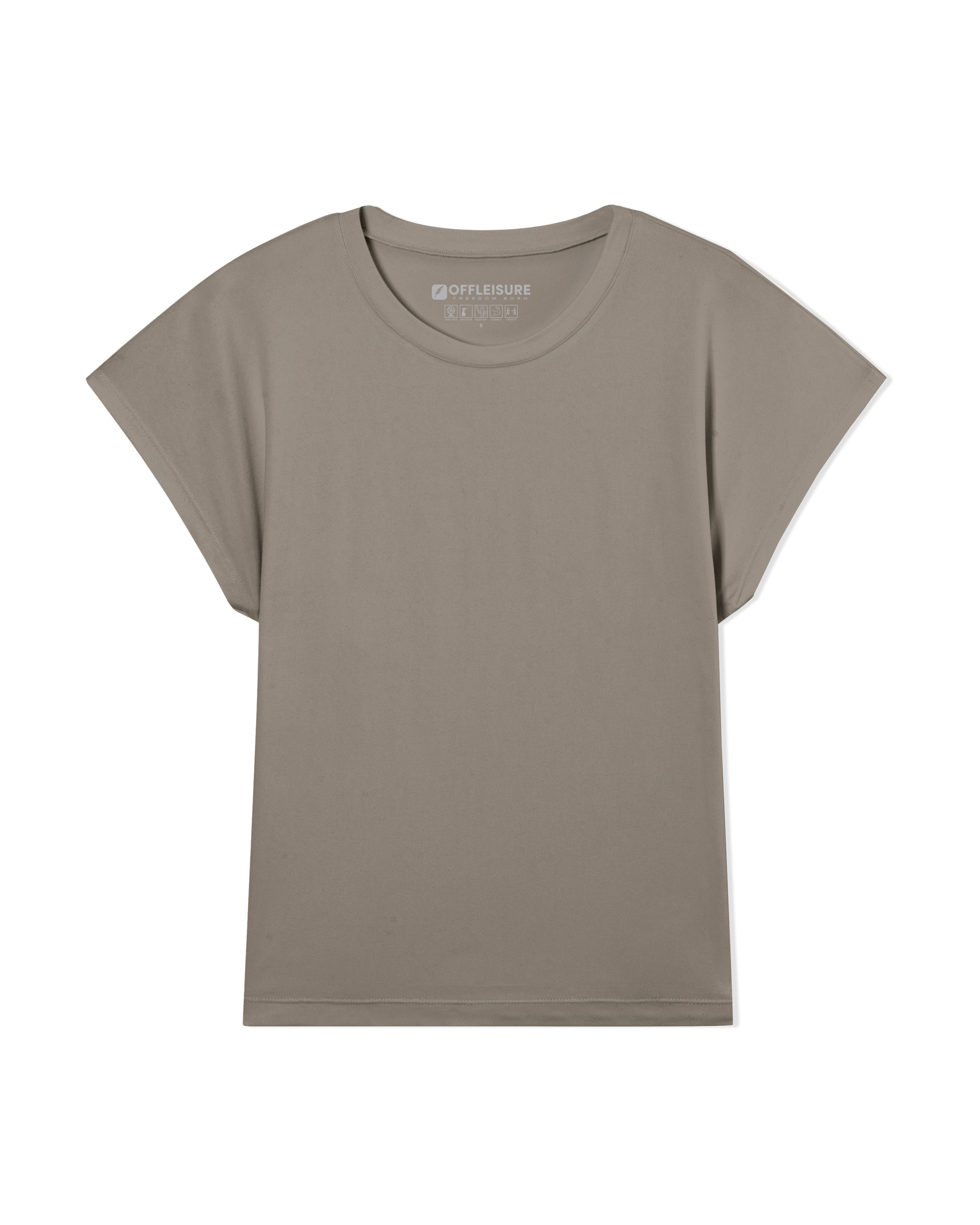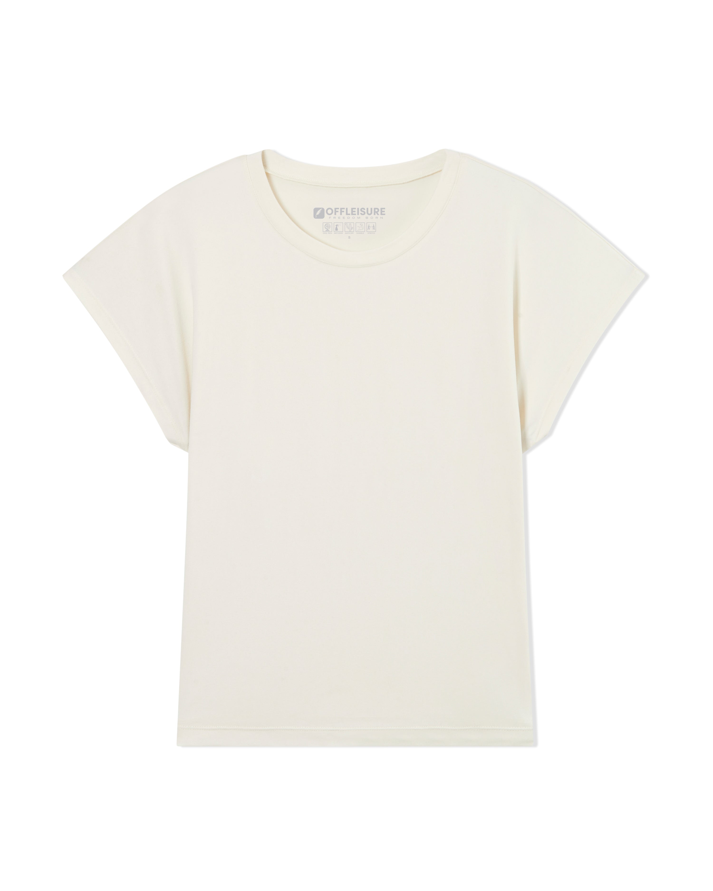 The Women's Core Cap Sleeve Tee. Built with our ultra-soft cool tech jersey, this easy top flatters all with a relaxed, draped fit and slight drop shoulder.