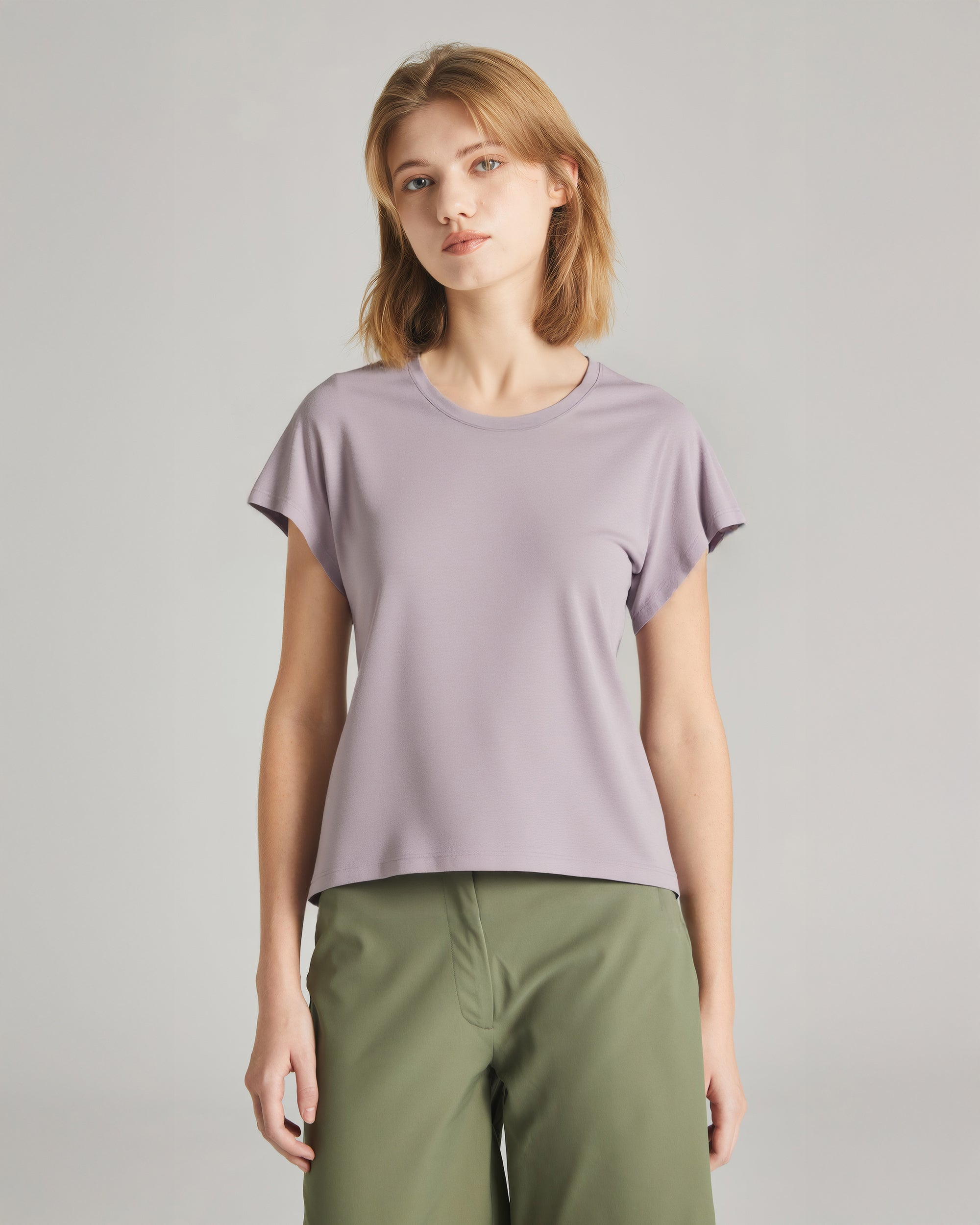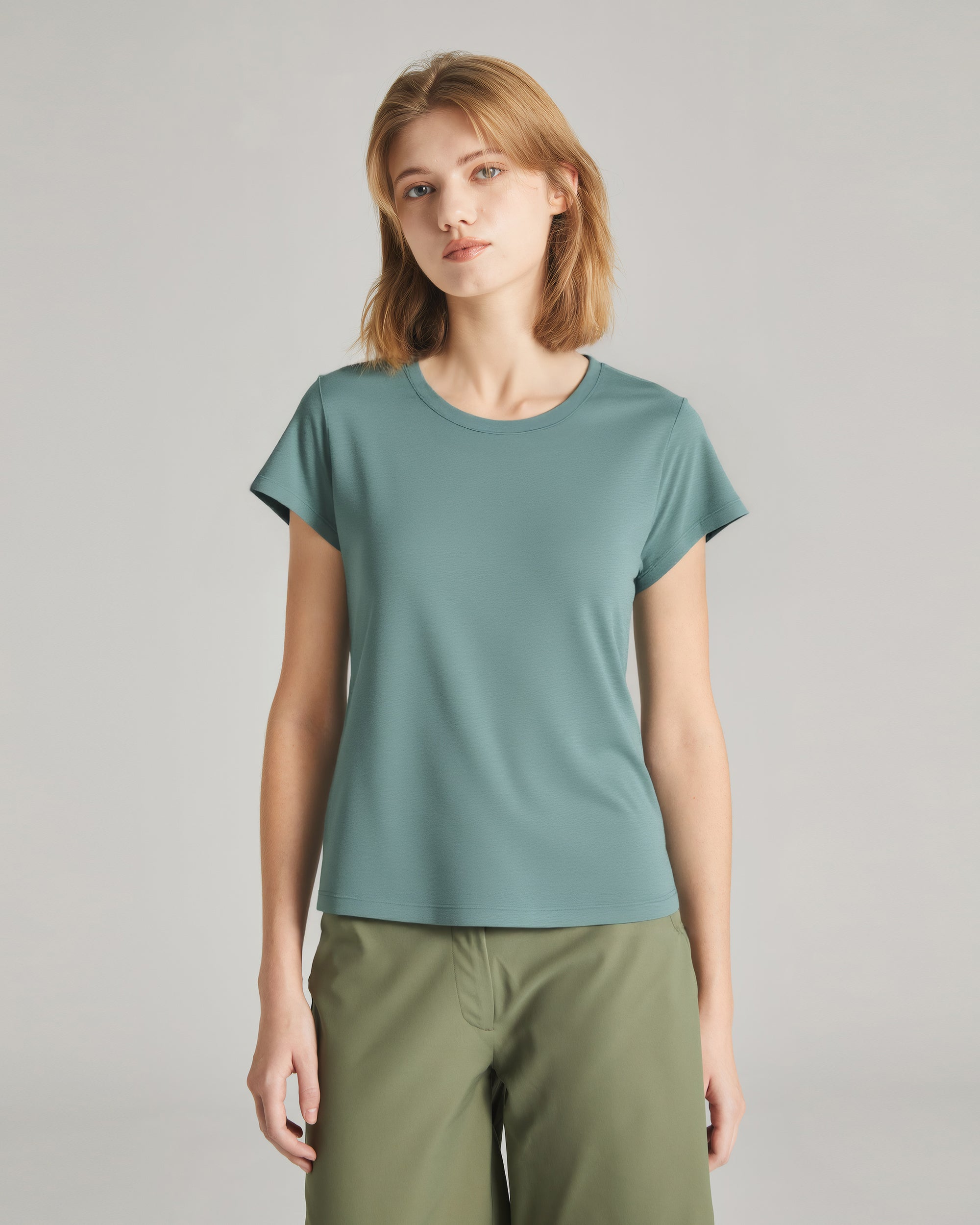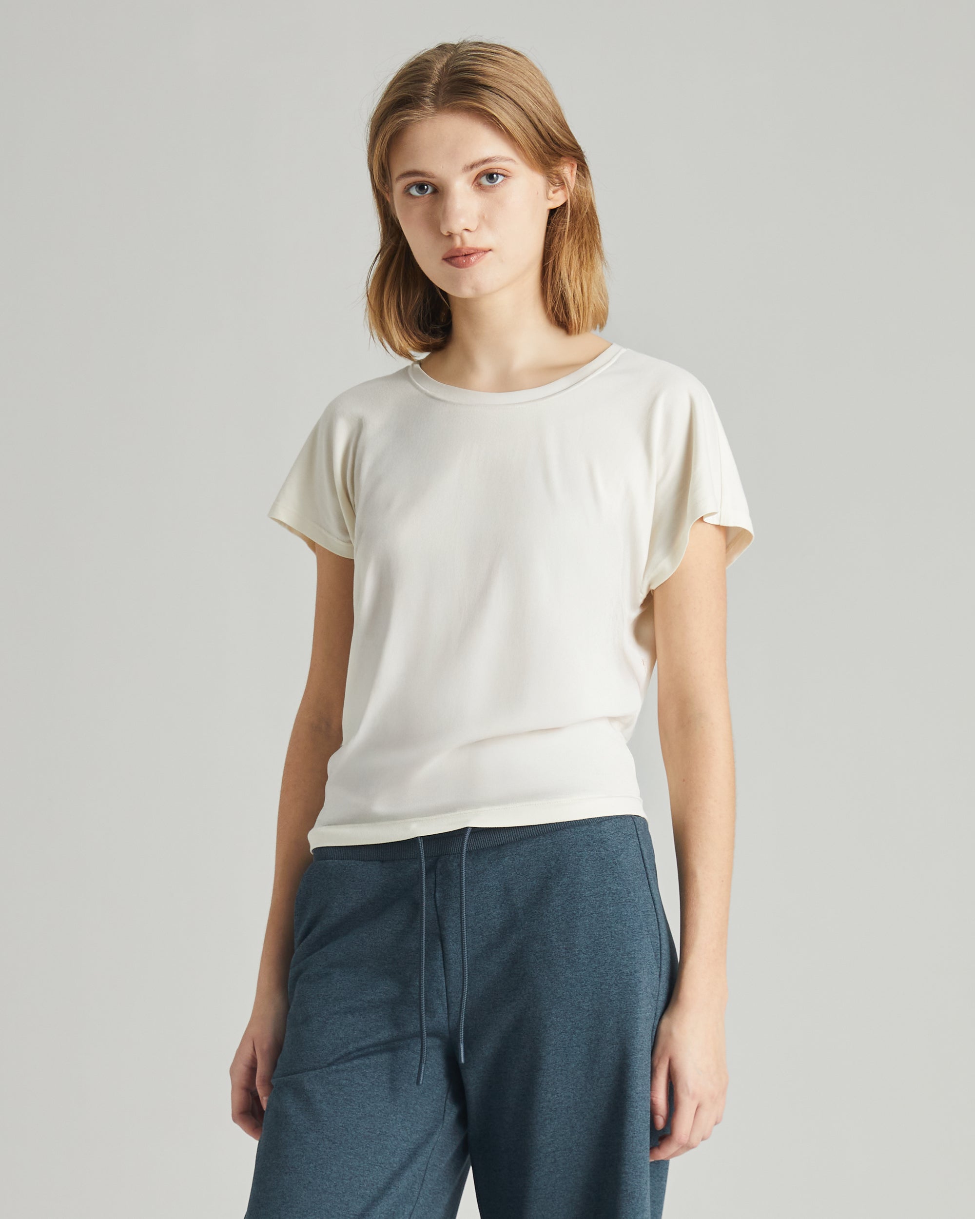 The Women's Core Cap Sleeve Tee. Built with our ultra-soft cool tech jersey, this easy top flatters all with a relaxed, draped fit and slight drop shoulder.